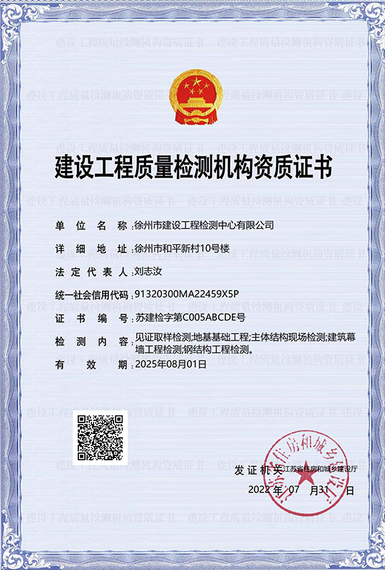 徐州市建設(shè)工程檢測(cè)中心有限公司(以下簡稱徐建檢測(cè)公司)是徐州市產(chǎn)城發(fā)展集團(tuán)有限公司(以下簡稱產(chǎn)城集團(tuán))的全資子公司。徐建檢測(cè)公司前身為徐州市建設(shè)工程檢測(cè)中心,2018年事轉(zhuǎn)企改制,2020年4月,完成轉(zhuǎn)企改制資產(chǎn)劃轉(zhuǎn)工作。 徐建檢測(cè)公司是集檢測(cè)、檢驗(yàn)、鑒定、咨詢等技術(shù)服務(wù)為一體、具有獨(dú)立法人資質(zhì)的綜合性第三方服務(wù)機(jī)構(gòu)。公司主要從事建設(shè)工程領(lǐng)域相關(guān)工程質(zhì)量檢測(cè)及技術(shù)咨詢服務(wù),業(yè)務(wù)覆蓋地基基礎(chǔ)、建筑材料、建筑結(jié)構(gòu)、鋼結(jié)構(gòu)工程、市政工程、綠色建筑節(jié)能工程、建筑安全與施工設(shè)備、建筑防水、建筑水電、裝飾裝修、建筑物防雷、室內(nèi)環(huán)境、房屋安全鑒定、城市軌道交通工程等專業(yè)領(lǐng)域。......